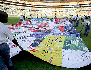 Quase todos os adeptos estavam vestidos de verde e amarelo, as cores dos Bafana Bafana (seleção sul-africana), que abrirão a competição no dia 11 de junho contra o México.
