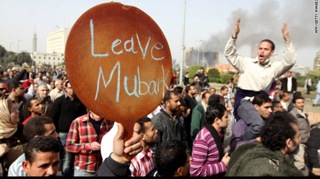 “Estamos a pedir a queda do regime. Temos uma meta, que é retirar Hosni, nada mais. Os nossos políticos precisam intervir e formar coaligações e comitês para propor um novo governo”, disse o engenheiro de computação Ahmed Abdelmoneim, 25 anos. Fotos de Mubarak, que a exemplo de todos os seus antecessores foi um oficial militar de alta patente, eram penduradas nos semáforos, simulando um enforcamento.