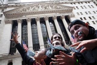 Nesta segunda-feira um porta-voz do grupo Ocupem Wall Street, Patrick Bruner, apelou aos manifestantes para que se vistam como “zombies” e “comam” dinheiro a fingir, notas do jogo Monopólio, para que os responsáveis do sector financeiro os vejam “a representar uma metáfora das suas acções”, adiantou a Associated Press.