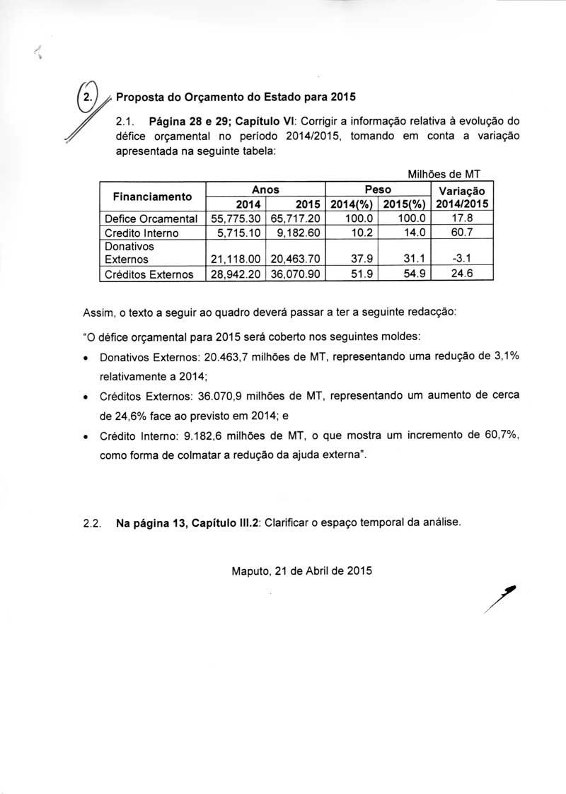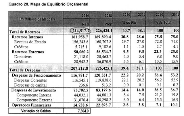Talvez, devido a estes erros numéricos, oito dias após submeter ao Parlamento um dos documentos mais importantes para andamento do país, o Executivo dirigido por Carlos Agostinho do Rosário submeteu uma errata à “Proposta de Lei que Aprova o Orçamento do Estado para 2015”.