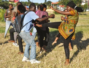 Começam com uma pequena oração. Depois dispersam-se: as raparigas de um lado, os rapazes de outro. De seguida, vão formando pequenos grupos mistos e agem como se estivessem a ser filmados. Aliás, tratase de uma simulação das cenas da novela denominada “A Morte dos Humanos” que será gravada amanhã (19 de Março) com recurso a meios próprios. Ou seja, alguns elementos do grupo ofereceram a sua casa para a filmagem de algumas cenas, além de pequenas doações feitas para o aluguer da câmara de fi lmar e aquisição das videocassetes.