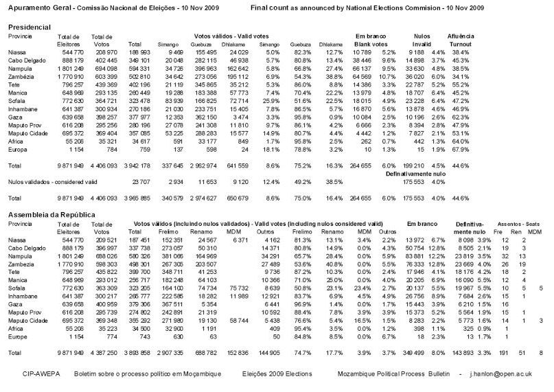 Isto não foi o suficiente para mudar a distribuição dos assentos. Mas a requalificação dos nulos deu 596 votos extra para a Frelimo e 526 para a Renamo, o que foi quanto bastou para dar à Renamo um assento extra em Sofala.
