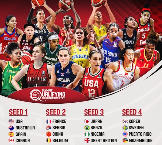 Após a realização dos torneios continentais de apuramento dos representantes de África, América e Ásia e Oceânia e actualizado o ranking, onde Moçambique ocupa o 43º lugar entre 124 países, a FIBA anunciou nesta quinta-feira (21) a composição dos potes de onde serão sorteados os quatro grupos de apuramento para os Jogos Olímpicos de Tóquio em 2020.