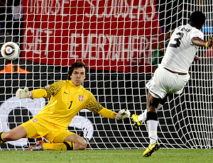 O primeiro penalti do Mundial foi marcado por Gyan, que com categoria enganou Stojkovic que caiu para direita enquanto a jabulani entrava pelo centro da baliza para o 1-0, à passagem do minuto 38.