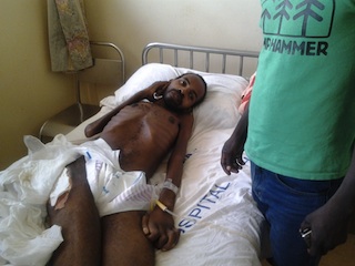 A vítima do acidente está quase inanimada no Departamento de Cirurgia da maior unidade sanitária do país e o seu estado de saúde tem estado a piorar a cada dia que passa por falta de assistência clínica adequada. Segundo os seus parentes, há três dias que ele não beneficia de higiene nas feridas por desleixo dos médicos. Estes alegam que não existem medicamentos para o efeito.