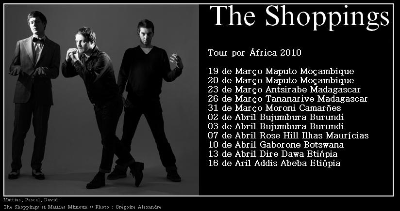 De 17 de Março a 18 de Abril, The Shoppings, banda francesa de Paris e Montpellier, composta por David Lavaysse (musica & produção) e Pascal Monfort (voz e letras), estão em um Tour por África. O grupo foi criado no Verão de 2006 quando David Lavaysse e Pascal Monfort passavam férias.