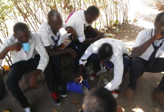 Desinibido, o grupo, que noutros dias chega a ser constituído por pelo menos 10 pessoas, não se preocupa com os transeuntes, nem com os professores e tampouco com a direcção da escola pois, segundo eles, é comum ver os alunos a consumirem bebidas alcoólicas naquele recinto.