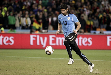 O cabeludo e alto avançado uruguaiu, que entrara na segunda parte, arrancou para a jabulani e com um toque de classe, por baixo da bola, coloca-a em jeito no fundo das redes. Silêncio no Soccer City, o Gana estava eliminado!