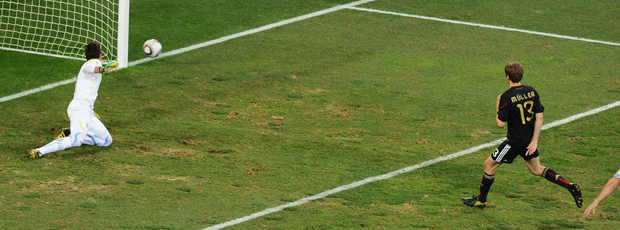 O médio e o guarda-redes, aliás, escreveriam mais um capítulo juntos dez minutos depois. Antes disso uma bomba de Schweinsteiger aos 19 minutos pôs a Jabulani a voar a 117km/h e, aí sim, houve o tal reencontro: Muslera defendeu para frente e Müller, sozinho, apanhou o ressalto para abrir o placar. Enquanto os defesas levantavam os braços para pedir um fora de jogo que não existiu, a Alemanha festejava o 1 a 0.